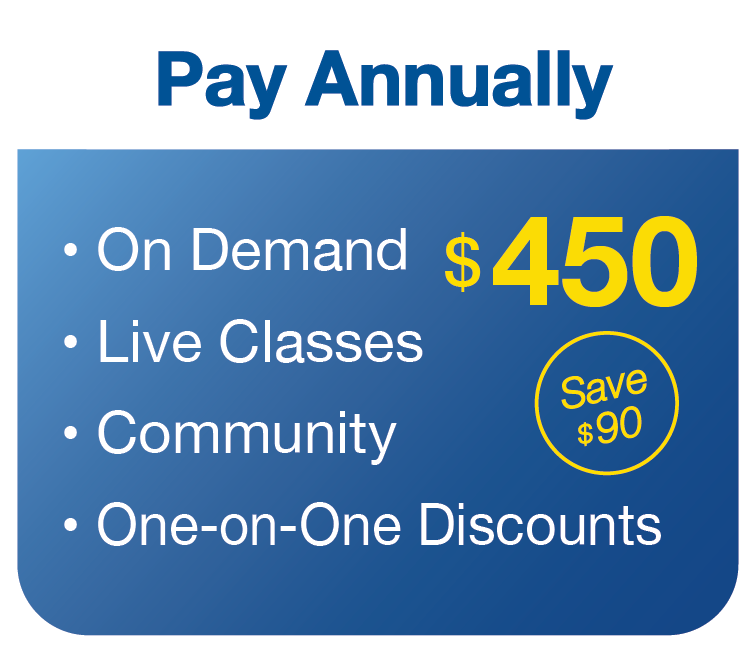 Members-only weekly online classes from anywhere in the world.